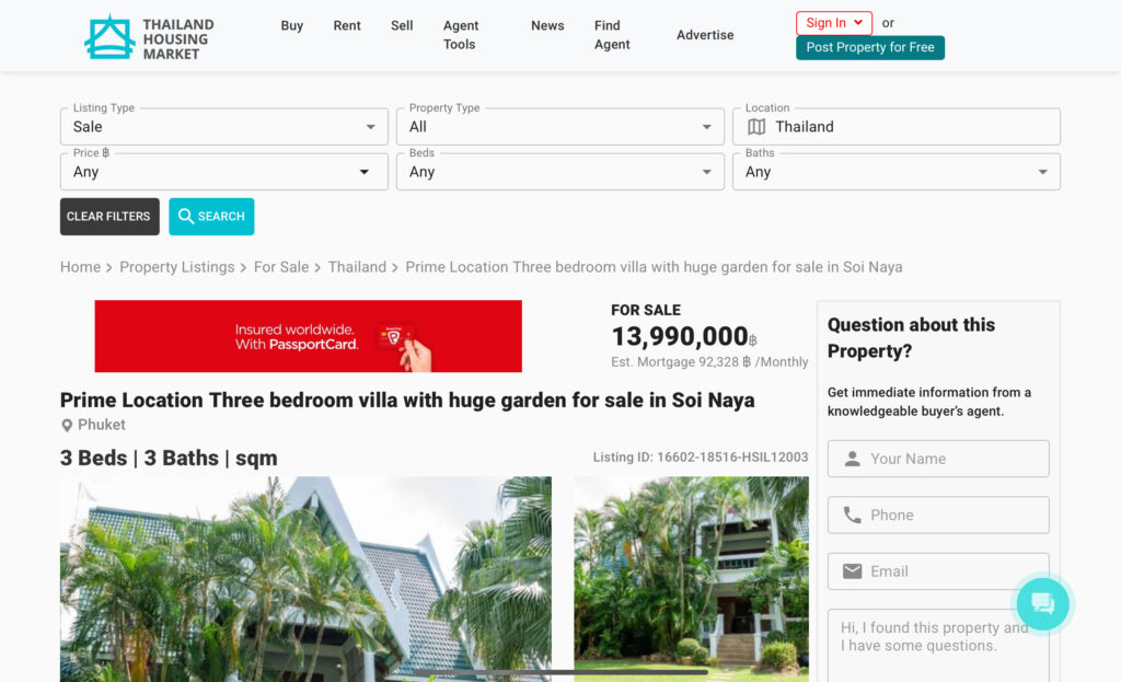 PassportCard places its display ads on premium real estate marketplaces under Housing Market Group, ensuring visibility among expats and foreign investors. This means their health insurance offers appear at the right time—when people are making relocation or investment decisions.